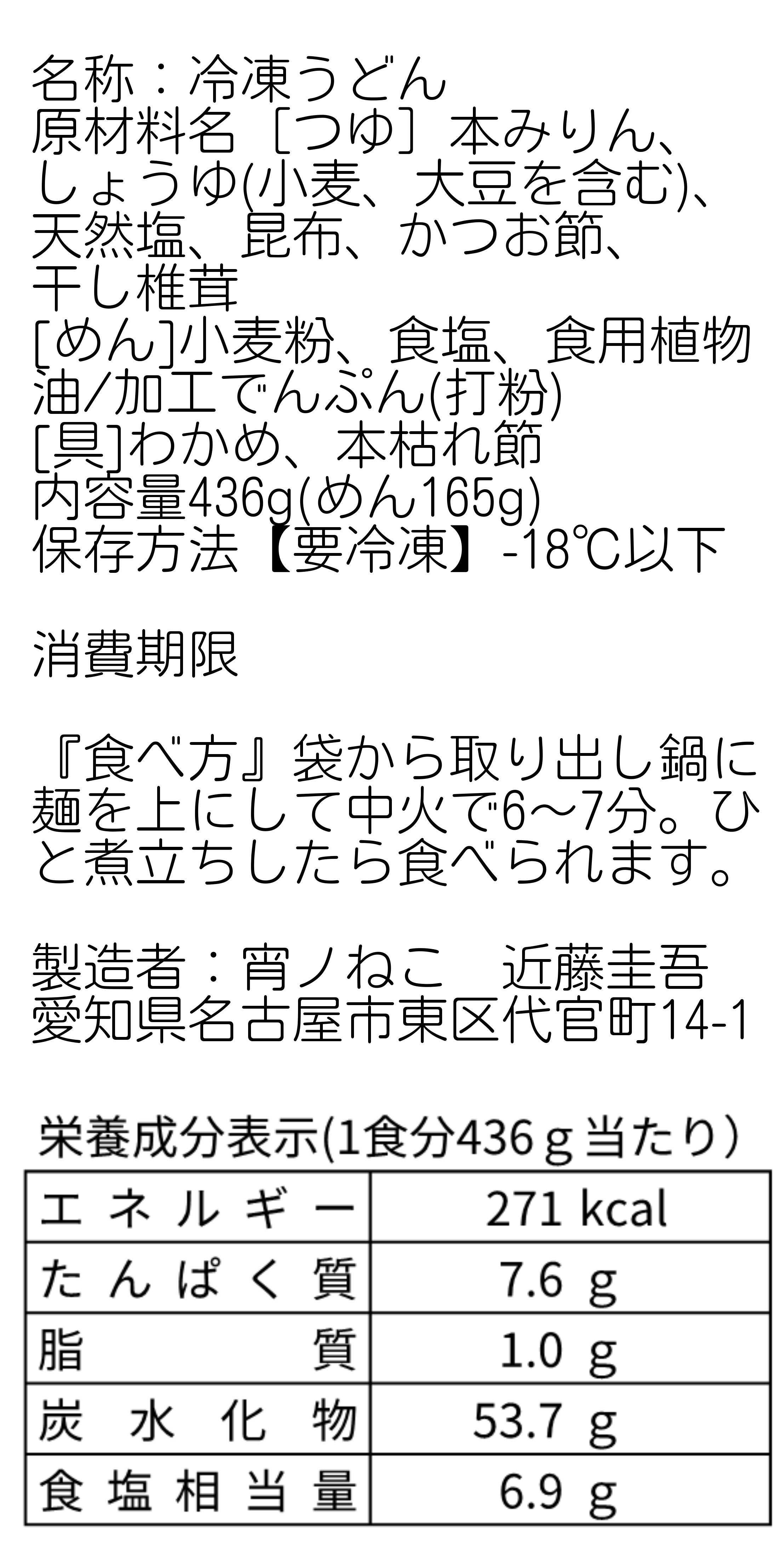 つゆは、昆布、鰹節で丁寧に作り、澄んだ色味で優しい味の宵ノねこ特製うどんつゆです。